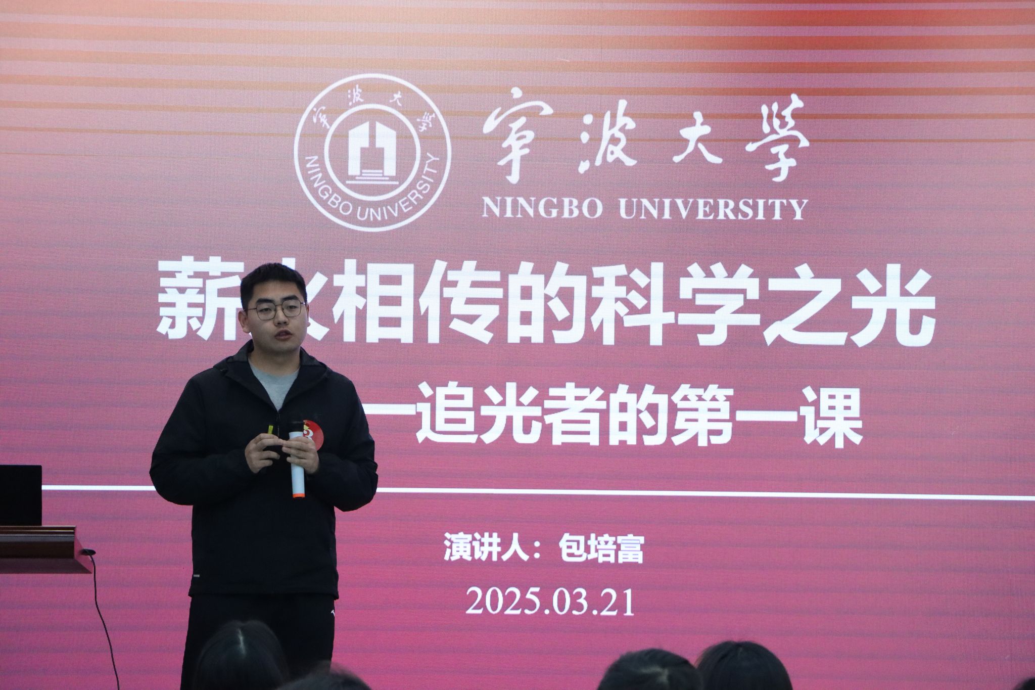 活动现场,2024年“宁大潮音”思政微课学生组一等奖获得者沈栩帆同学应邀作赛前展演。他以“三封书信话信仰”为题,通过分享革命年代裘古怀的绝笔信、建设年代郑哲敏的归国信、新时代郭丽洁的报告信,深情讲述了青春与时代的紧密联系,激发了在场师生对于新时代青年使命与担当的深切共鸣,为大赛开幕营造了良好氛围。