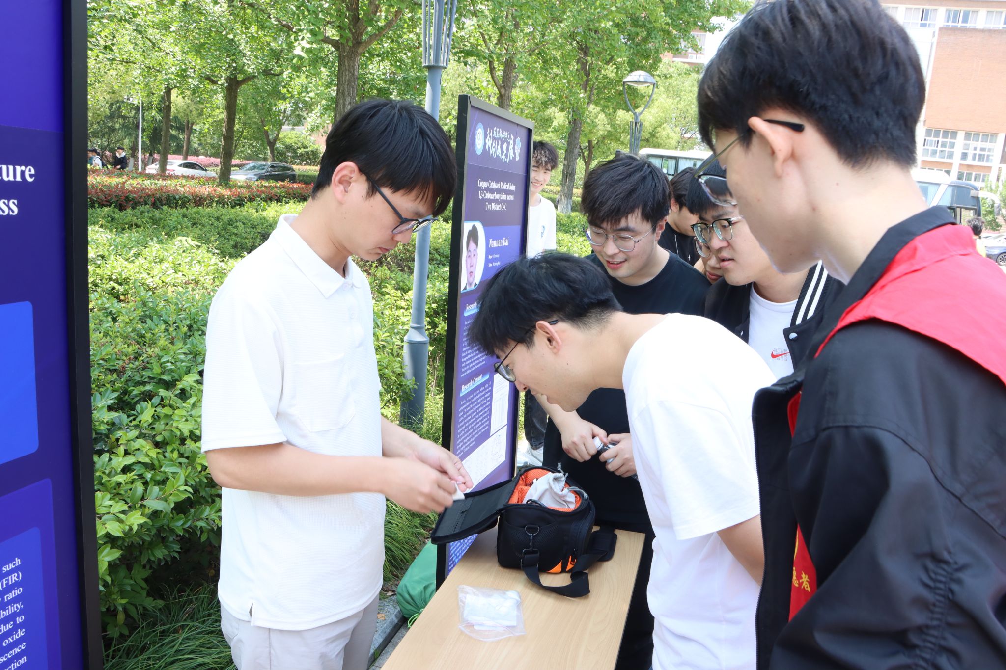 于5月29日在北区喷泉广场开展“创聚‘氢’春,材展菁华”学生科创成果展活动,吸引了数百名师生前来参观交流。