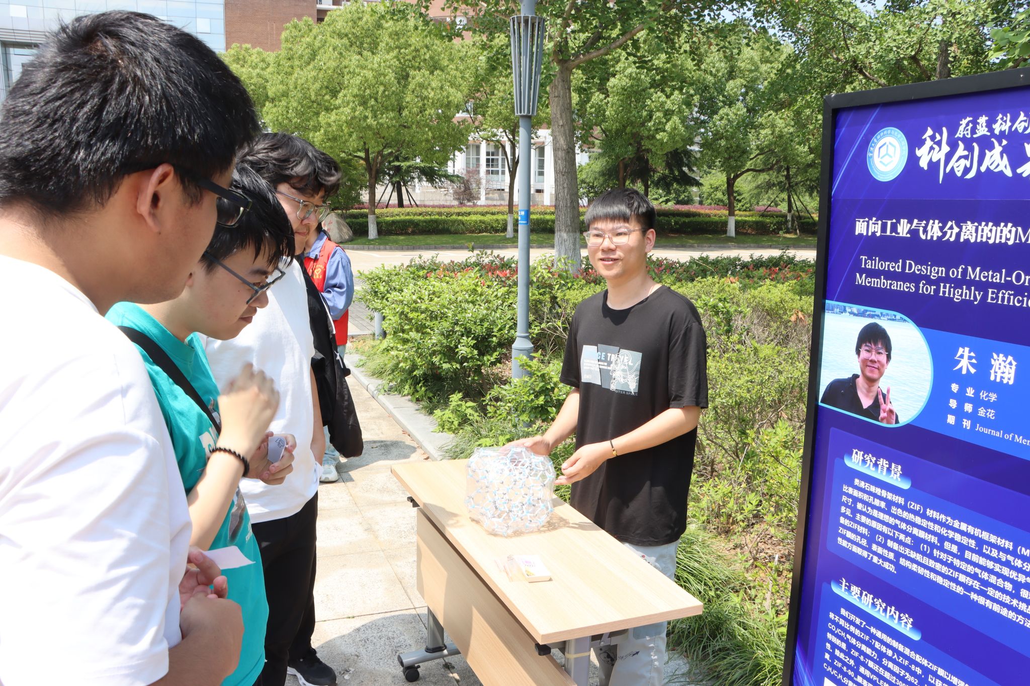活动以成果展示+现场讲解的形式,精心展出了同学们在高分子材料、能源化工等各个领域的突出研究成果,相关研究成果发表于Nature Communication等高水平期刊中。参展的材化学子们结合实物,向同学们深入浅出地介绍了自身科研领域的进展和成果。