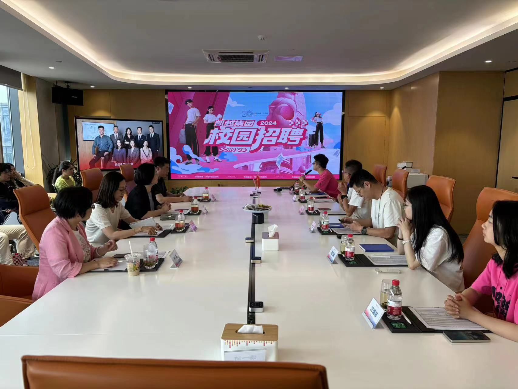 集团人力资源经理陈钱带领学院师生一行参观了产品展示中心和办公区,并详细介绍了集团的运营模式、行业未来前景等情况。 随后,双方就集团校招需要进行了座谈交流。
