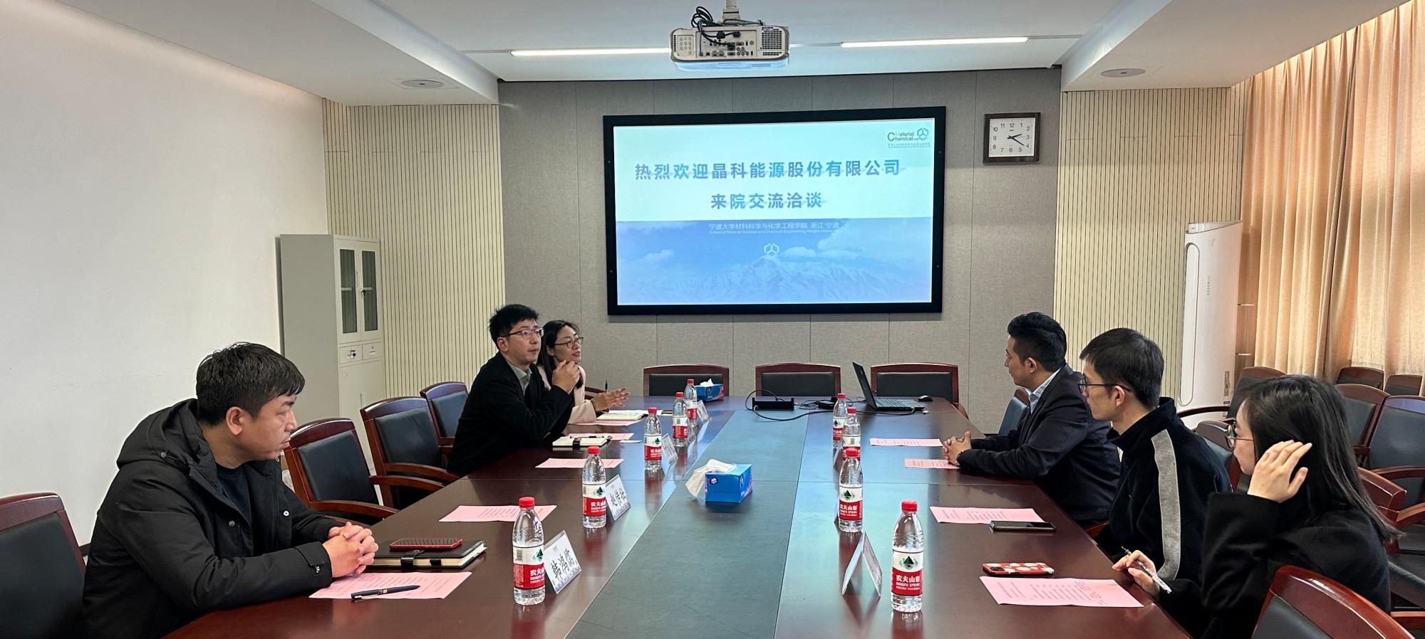 会上,尹慧代表学院对李孟珂一行的到访表示热烈欢迎,并简要介绍学院情况,希望能与企业在学生就业创业、奖学金捐赠、职业生涯规划等多方面长期深入合作,点面结合,协同育人,实现互惠共赢,共同发展。李孟珂一行介绍了晶科能源有限公司的发展历程、产品模式、招聘需求、未来规划以及合作期望。希望双方进行全方位深度合作,资源共享、优势互补,构建校企协同育人长效机制。周明炯表示希望以本次洽谈会为起点,搭建校企科研合作平台,拓宽合作模式,实现企业需求与学院培养无缝对接,形成导师、学生、企业三方利益良性循环长效机制,为企业输送更多优秀人才,帮助企业攻坚克难。韩鸿儒介绍了有爱爱