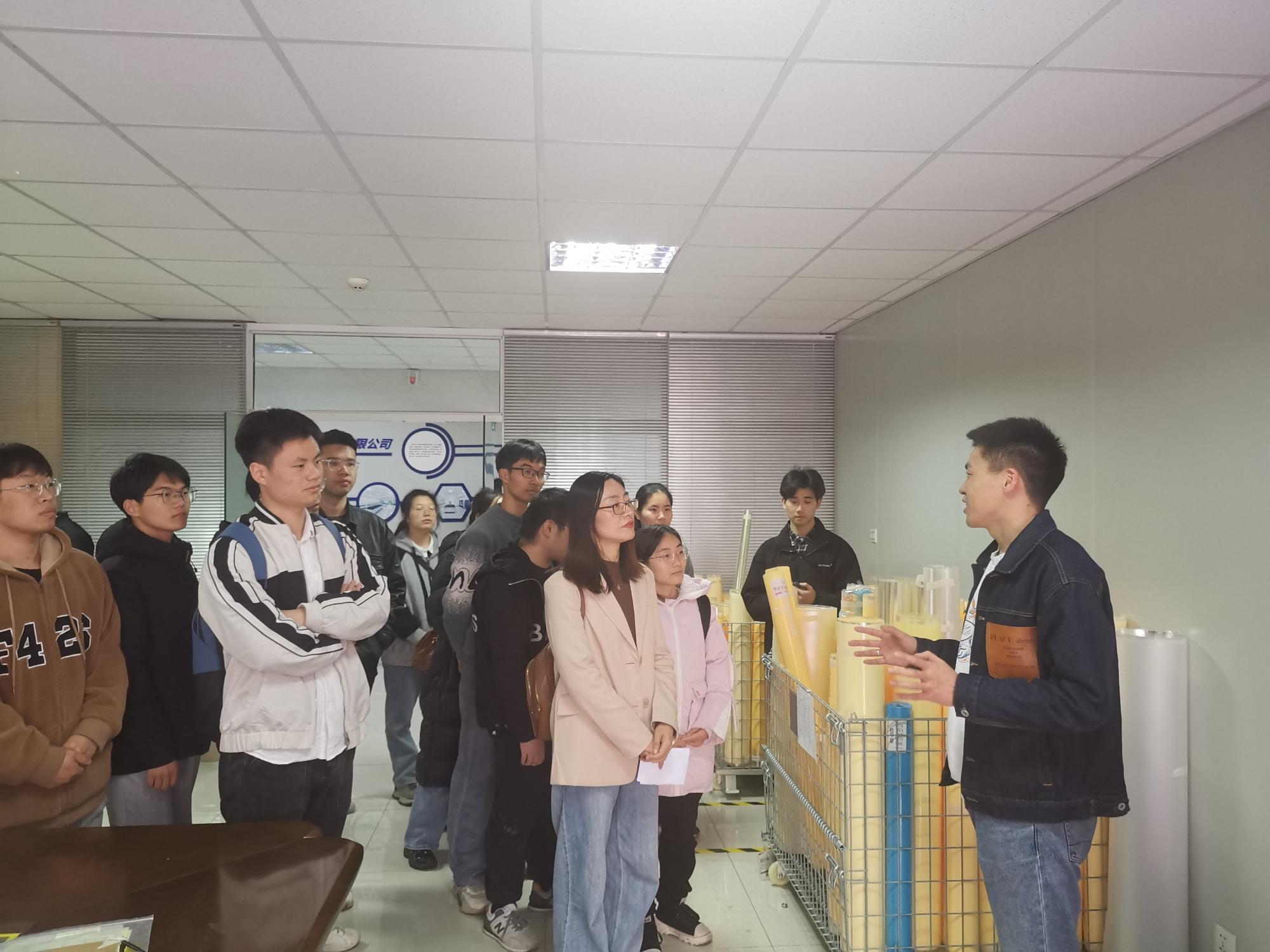 党委副书记尹慧、就业辅导员韩鸿儒及17名学生代表参观走访了单项冠军企业宁波激智科技股份有限公司。公司副总经理胡金福、人力资源经理赵仁艾等公司负责人热情接待。