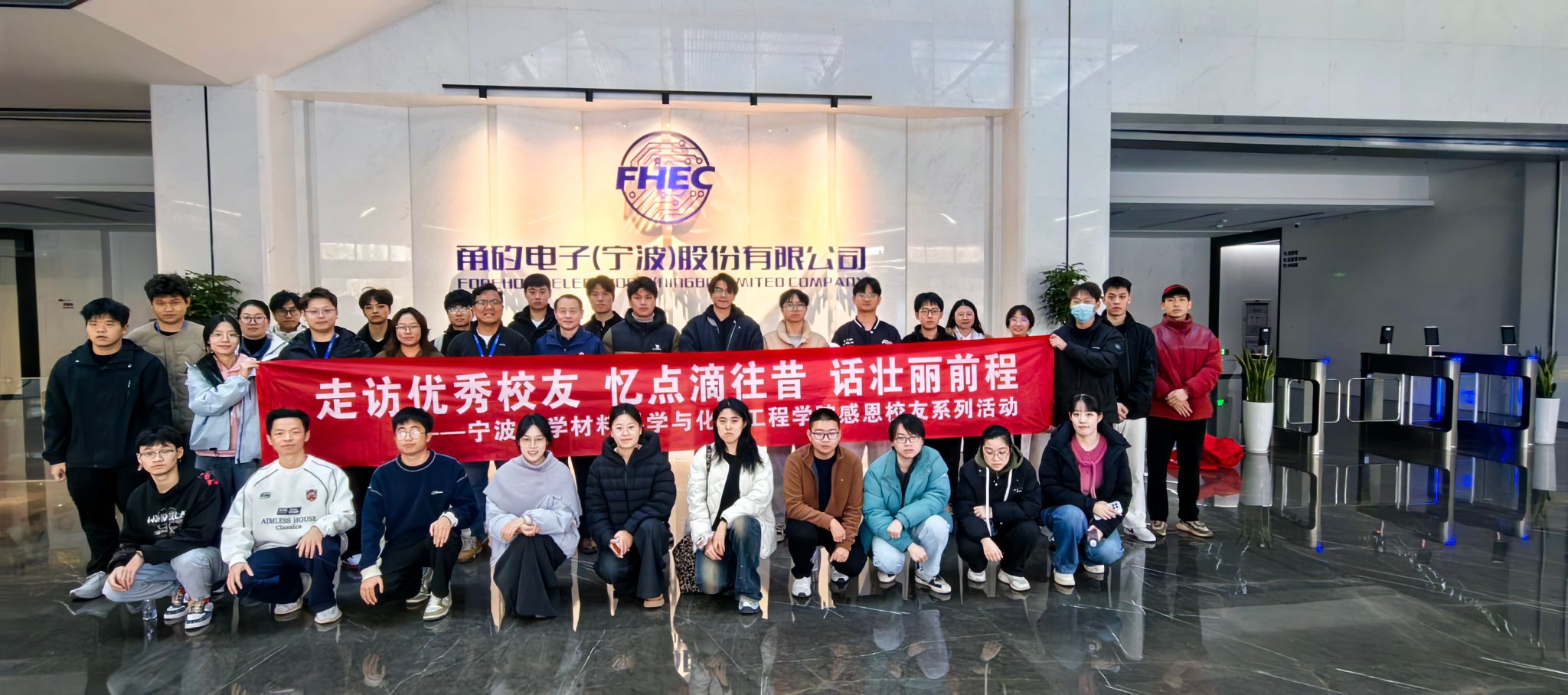 师生代表一行30余人走进甬矽电子(宁波)股份有限公司,走访看望优秀校友,搭建校企合作平台。公司副总杨士杰带领公司相关人员热情接待了学院师生一行。公司高级项目主管、学院2021届校友杨曹娜、2024届校友蒋超燕、叶秋金作为公司优秀校友代表与学院来访师生代表会面交流,分享学习工作心得,共同探讨各项校企合作事宜。
