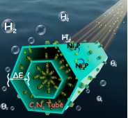 该研究工作将平面g-C3N4纳米片弯曲成氮化碳方管(C3N4Ts),在纳米层间引入表观电势,促进层间电子传输,并将Ni2P纳米粒子作为电子受体负载于C3N4Ts(Ni2P/C3N4Ts),实现高效的太阳能水解离制氢。在Ni2P/C3N4Ts上的制氢效率为19.25 mmol.g-1h-1,且有大量连续不断的H2气泡。密度泛函理论及表征结果揭示了在C3N4Ts的表观电势差下,光生电子从C3N4T(001)定向迁移至Ni2P(111),从而促使Ni2P/C3N4Ts具有高效的产氢性能。这些结果为材料工程领域提供了一种新颖的策略,即通过引入表观电势来提高定向电荷迁移,从而提高太阳能转换效率。