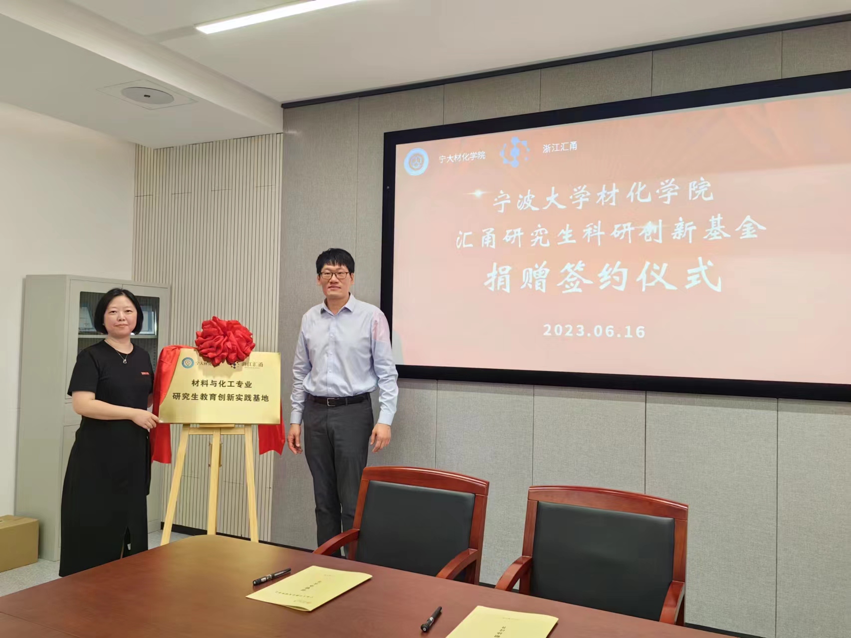 据悉,学院和浙江汇甬新材料有限公司共建材料工程与化工专业研究生创新教育实践基地。汇甬公司捐资30万元,每年10万元设立“汇甬研究生科创基金”,用于支持研究生开展创新创业研究活动,推进专硕研究生面向企业需求开展科学研究和学习应用。