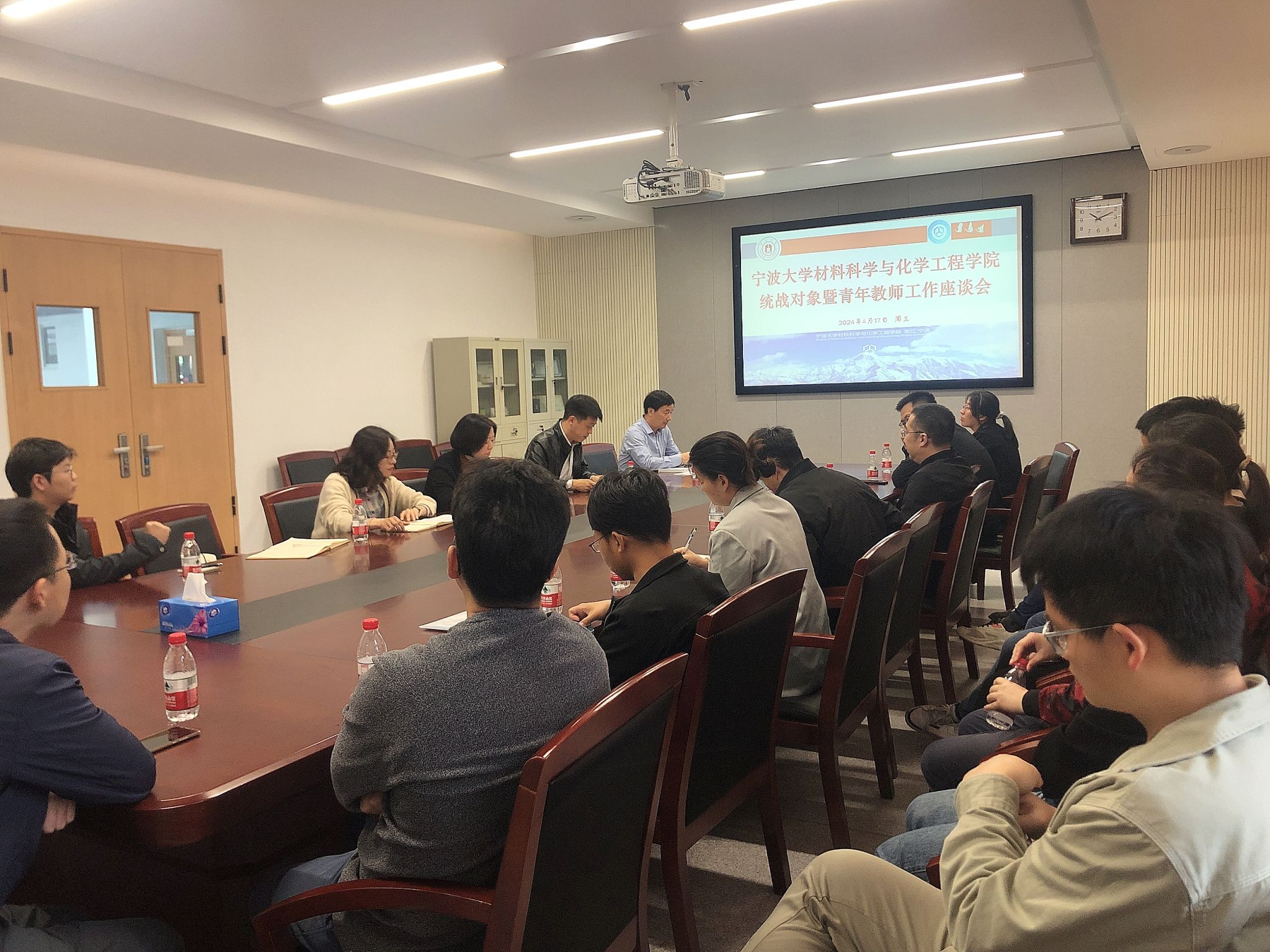 在北区逸夫材化楼北楼227会议室,召开2024年度统战对象暨青年教师座谈会。学院领导班子成员、各民主党派、无党派人士、近三年引进的青年教师代表20余人参加了座谈会。会议由学院党委统战委员、副院长赵传壮主持。