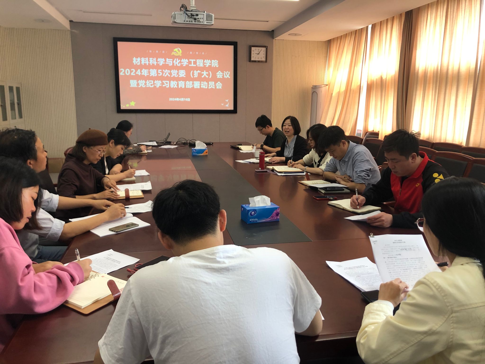 委员会关于开展党纪学习教育的工作方案》有关要求,4月16日上午,材化学院党委召开党委扩大会,就在全院党员中开展党纪学习教育进行动员部署。学院党委委员、班子成员、师生党支部书记参加会议,会议由党委书记陶娟主持。