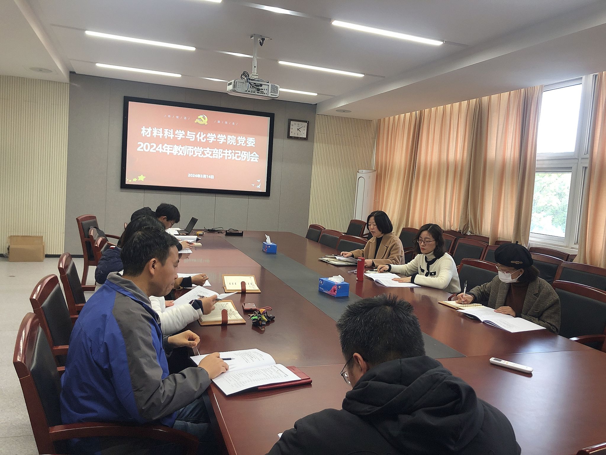 党委在逸夫材化楼北楼227会议室召开新学期教师党支部书记工作例会,布置新学期党建工作。会议由党委书记陶娟主持,党委副书记尹慧、全体师生党支部书记、专职组织员、学生党建辅导员参加了会议。