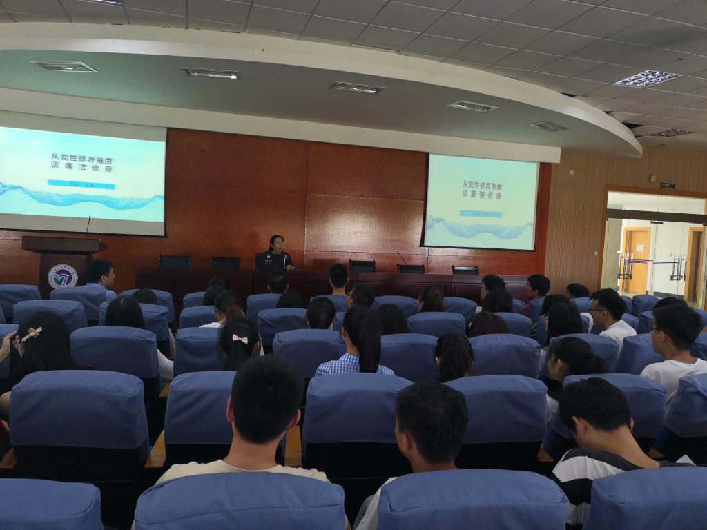 首先学院副书记朱燕给学生党员作了题为“从党性修养角度谈廉洁修身”的党课,从提高党性修养的角度,对学生党员提出廉洁自律、算好的人生“七笔账”的要求,叮嘱毕业班党员们要廉洁从业。讲座后,学院副书记和学工办主任给毕业班党员们送上学院精心制作的廉洁书签,期望他们像这片树叶书签一样,人生经络分明,毕业后走好人生的每一步。