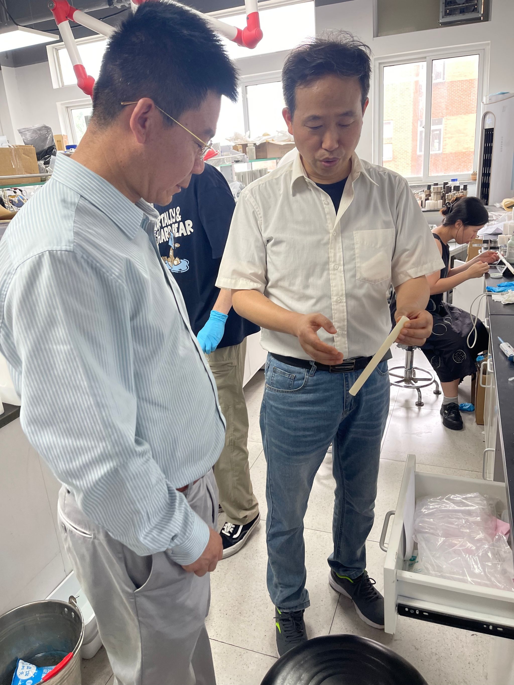 李砚硕教授,先进分离与催化材料研究所所长吴大朋,化工系主任金花一行参加座谈交流。