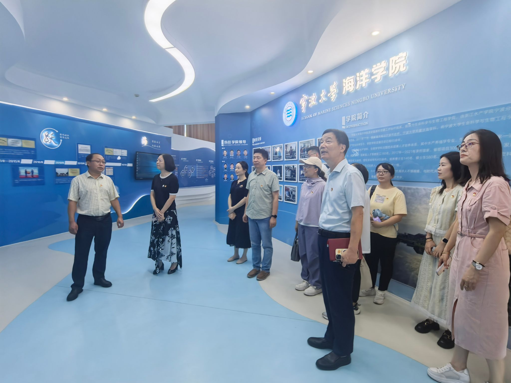 与省档案馆、教育厅共建,335件珍贵档案复制品中,既有中央档案馆首次公开的文献史料,也包含浙江红色历史珍品,党员们通过“档案里的初心故事”回溯革命历程。随后参观的全国样板党支部党建阵地,以规范化建设成果与特色工作法展示,为支部标准化建设提供实践参照,“五培五联五促”工作模式为我们提供了很好的借鉴。随后还参观了首批全国党建标杆院系—海洋学院的院史馆、学科建设展示厅,通过参观学习,能够更好的推动省级样板支部的创建。