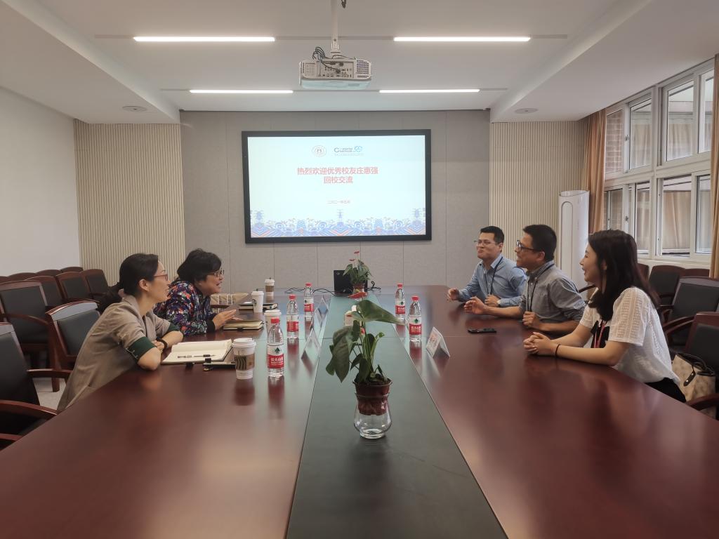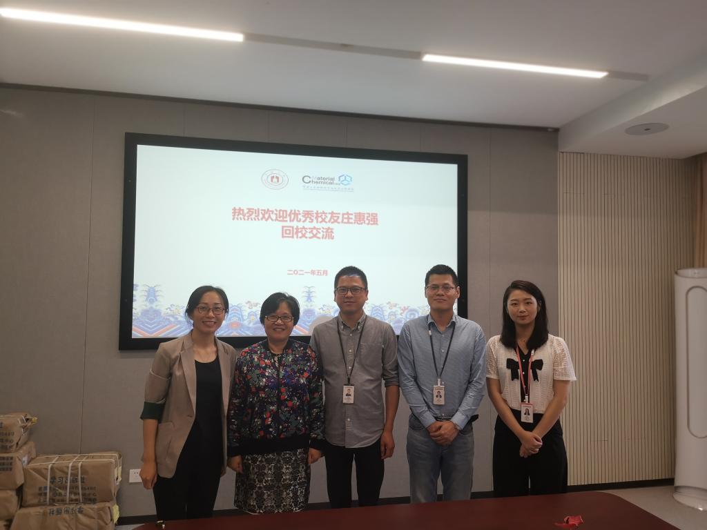 优秀校友化学专业2005届毕业生、宁波凯越国贸集团总经理庄惠强一行返校交流。学院党委书记陈玉涓,副书记朱燕,就业辅导员韩鸿儒参与接待。