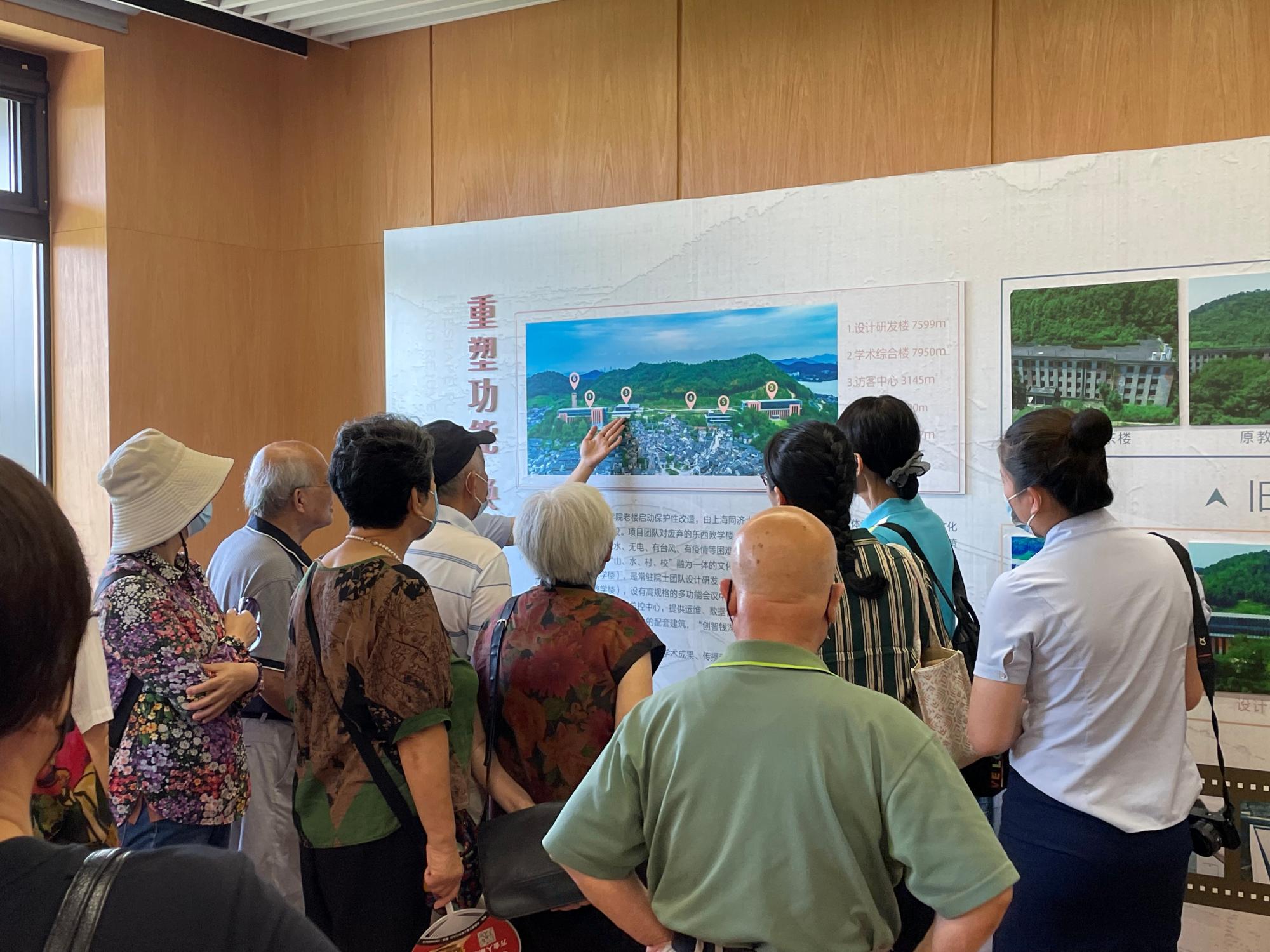 宁波院士中心项目是原宁波师范学院旧校舍进行了改扩建,包括东楼学术综合楼、西楼设计研发楼,原食堂改造的访客中心和原宿舍改造的陶公讲堂。全体参观人员在院士中心讲解员的引导下,参观了学术综合楼、设计研发楼,在长长的景观长廊上,朱燕向参加此次活动的所有离退休教职工通报了学院近两年的发展情况及下一步的工作计划。