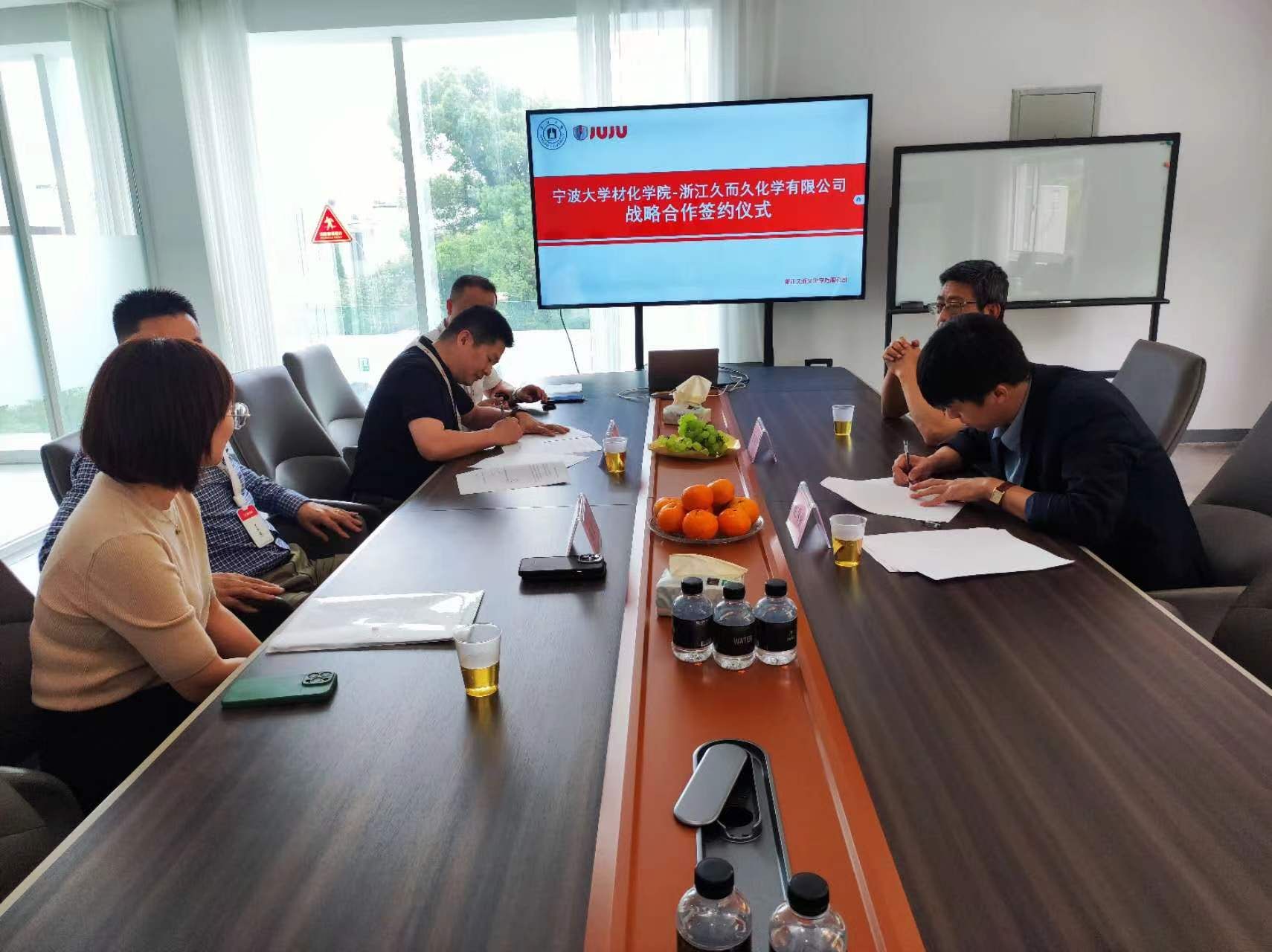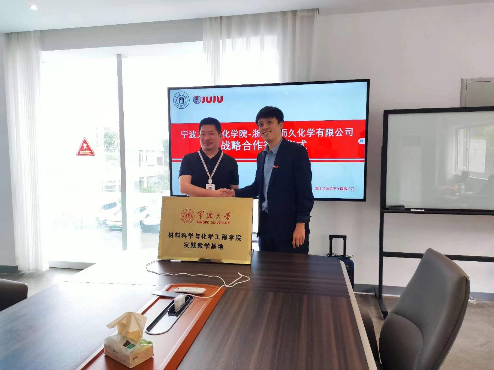 -浙江久而久化学有限公司战略合作协议》。随后,双方进行了实践教学基地的授牌交接仪式。
