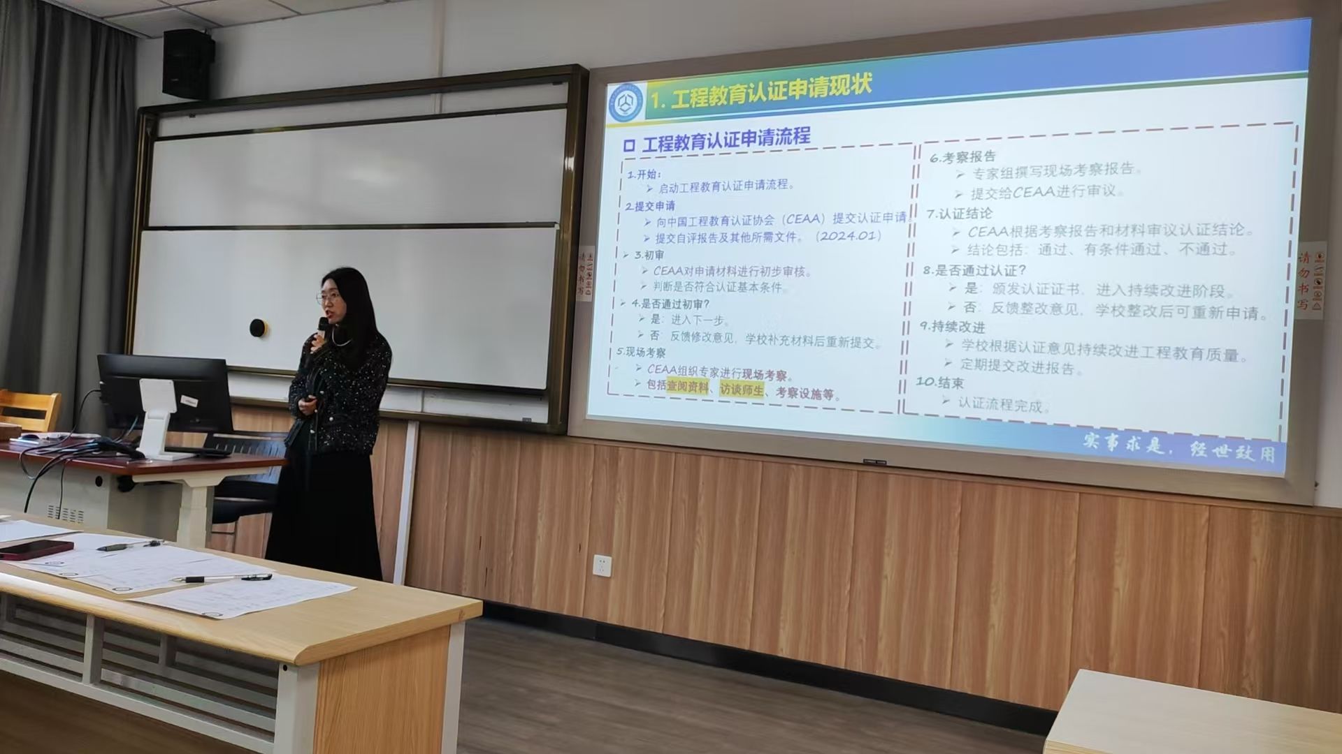 材料专业负责人许琳琼老师进行专题培训,系统讲解OBE理论体系,结合兄弟院校经验,对照新版认证标准提出教学档案建设要求。与会教师积极参与讨论,为完善认证方案建言献策。