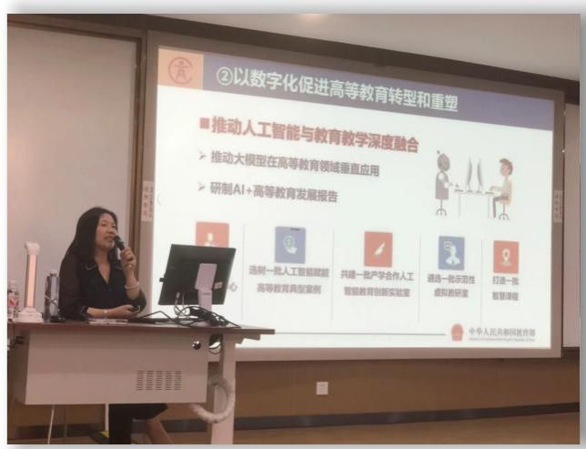 王玉枝教授首先围绕“双万计划”背景下的一流专业建设展开分析。她指出,当前中国高等教育正处于深刻变革期,教育部通过动态调整机制推动专业优化,重点支持服务国家战略的新兴领域。一流专业建设需紧扣认证标准,在师资队伍、培养方案、教学质量等方面持续发力,同时结合区域经济发展需求,培养高素质应用型人才。在课程建设方面,她提出要淘汰“水课”、打造“金课”,推进线上线下混合式、虚拟仿真实验等五类一流课程建设,并借助AI技术实现课程智慧化升级。