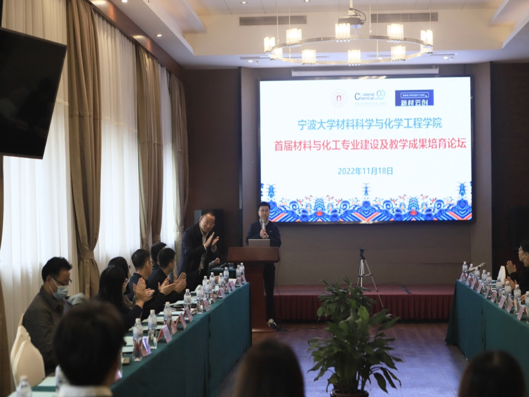 据悉:本次论坛是学院在十四五期间推进双万专业建设和人才培养模式改革上的重要举措之一,也是学院建院以来规模和影响最大的一次教学研讨活动。来自于浙江大学、上海交通大学、湖南大学、中山大学、北京科技大学、苏州大学、太原理工大学、中国科学院烟台海岸带研究所、济南大学、青岛大学、福州大学、新疆大学、浙江科技学院、浙大宁波理工学院、浙江大学宁波科创中心、宁波工程学院、宁波职业技术学院、“新材云创”新材料科创大脑、宁波市化工学会、宁波石化区行业协会、中石化镇海炼化分公司等20多家高校与单位参加了论坛。