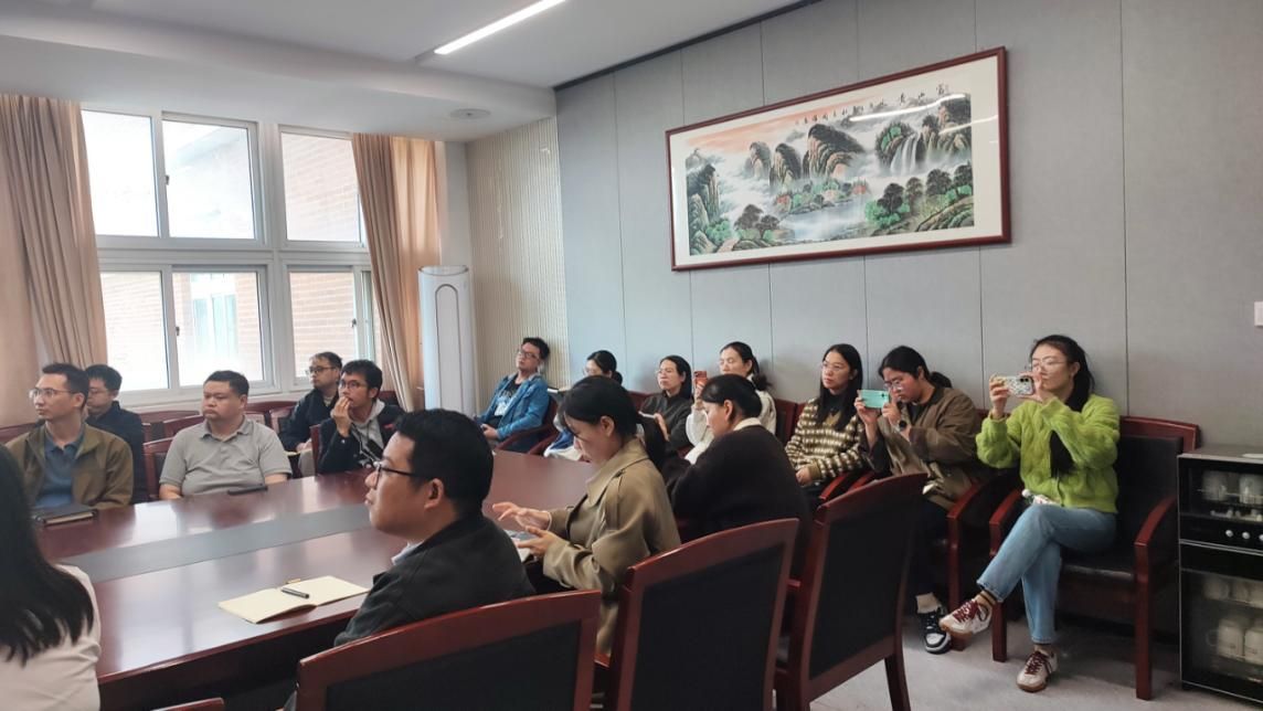 会议伊始,周明炯通报了学校及学院 2025 年度国家自然科学基金项目申报与立项的整体情况,客观分析了当前基金申报工作面临的严峻竞争形势,鼓励大家攻坚克难,力争实现立项成果新突破。