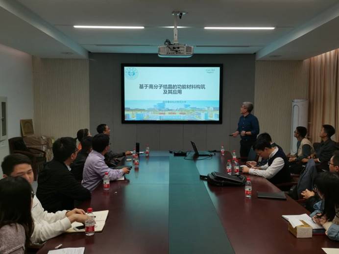 师生作了题为“基于高分子结晶的功能材料构筑及其应用”的学术报告。 由吉春教授是杭州师范大学材料与化学化工学院博导,2002年7月毕业于吉林大学,获工学学士学位;2008年7月于中国科学院长春应用化学研究所高分子物理与化学国家重点实验室获得理学博士学位,师从安立佳院士;2009年至2010年在德国Max-Planck Institute for Polymer Research从事博士后研究工作;2011年进入杭州师范大学材料与化学化工学院工作,2013年晋升为教授。主要研究兴趣为复杂高分子体系相行为及其应用。 由吉春教授基于高分子结晶的基本原理,发展了功能材料(包括形状记忆材料和多孔材料等)的构筑新策略,并探讨了其在分离等方面的应用。本次报告使广大师生对高分子结晶的功能材料构筑及其应用研究有了深入的了解,并从中学习到了很多科研研究的道理,深受有爱爱