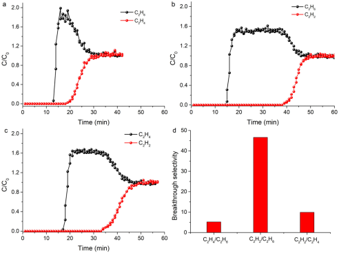 C2烃类的分离是近年来工业分离中最具挑战性的课题之一。开发高效、经济、节能的工艺是C2烃分离的发展方向。吸附分离因其效率高、成本低,是解决这一问题的有效途径之一。然而C2H4生产过程需要高温,而低温吸附分离过程造成能源浪费。因此,在高温下达到C2烃类混合物的分离将更加节能,高效。到目前为止,尝试在高温下进行C2烃类混合物分离的例子很少,而且分离温度较低。因此,开发用于C2烃类气体混合物高温分离的多孔材料至关重要。