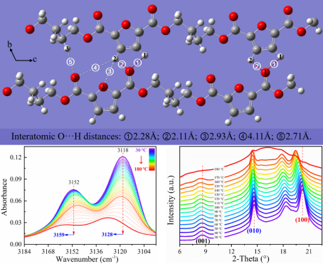 高分子材料加工与结构调控团队在高分子科学权威期刊Macromolecules上发表题为“Intermolecular ═C–H···O═C Hydrogen Bonding and Conformational Preference in Crystalline Poly(butylene 2,5-furandicarboxylate)”的研究论文,硕士生叶柏荣和邵琪为共同第一作者,李奕国教授为通讯作者,团队负责人王宗宝教授为共同通讯作者,有爱爱