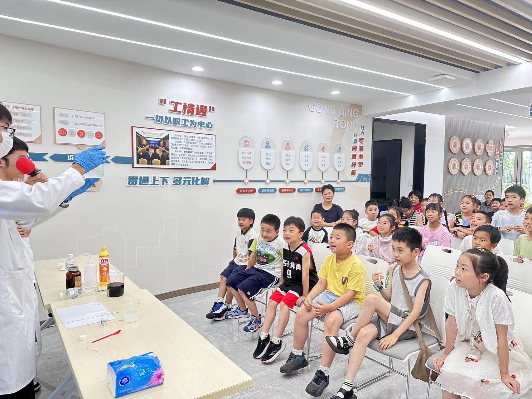 “我是小小科学家”环节,实践团成员们现场指导小朋友们亲手参与实验操作,让他们在亲身体验中感受化学的奇妙之处