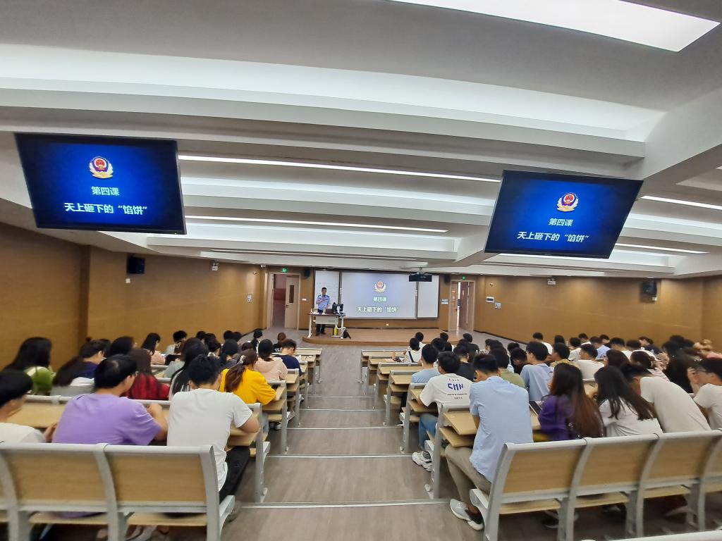 2021年5月8日,在北区3号楼108教室开展了预防网络电信诈骗的宣讲活动。庄市派出所的杨警官应邀来到有爱爱
