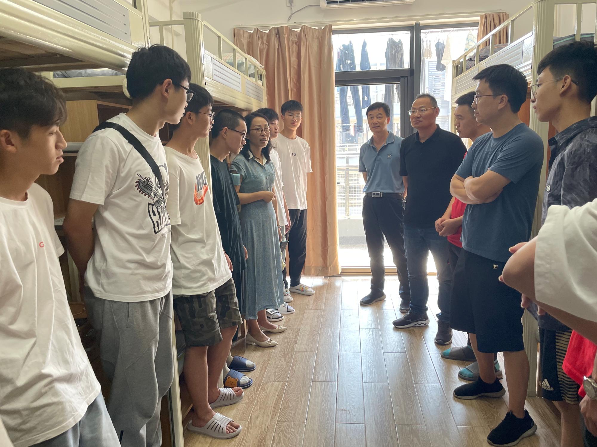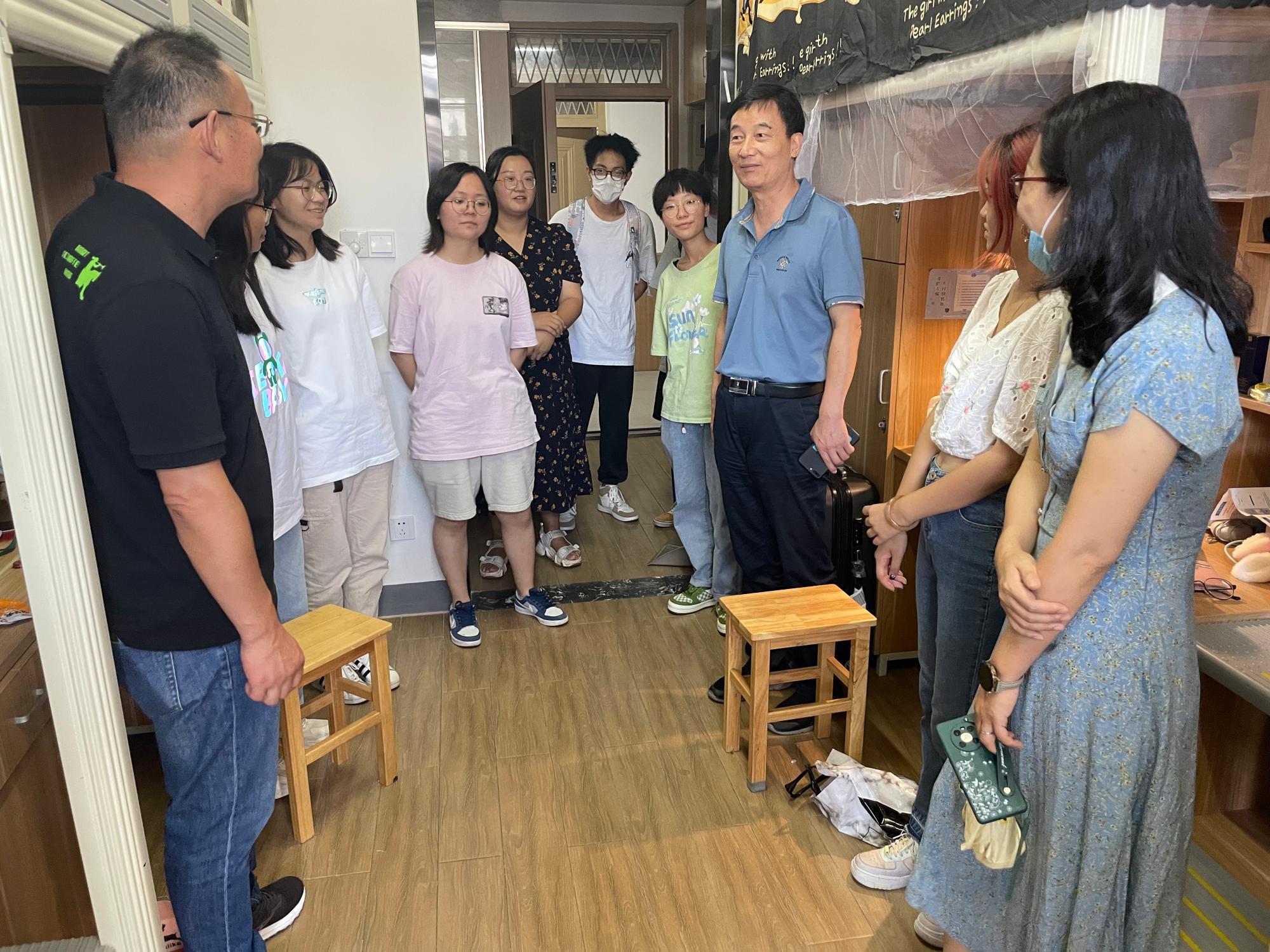 特聘院长丁传凡、党委书记罗云杰、副院长孙巍、党委副书记朱燕以及学院学工办辅导员一行来到2022级阳明新生寝室,深入了解有爱爱