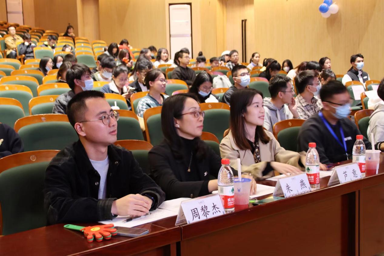 材化学院党委副书记朱燕、院辅导员芦意、周黎杰出席并担任评委,来自华通海派的外语教学总监Kelly、教学主管Helen、资深外语教师Spidey和Tone担任评委。因疫情原因,华通海派的老师们不能亲临现场,通过直播连线参与此次比赛的打分。