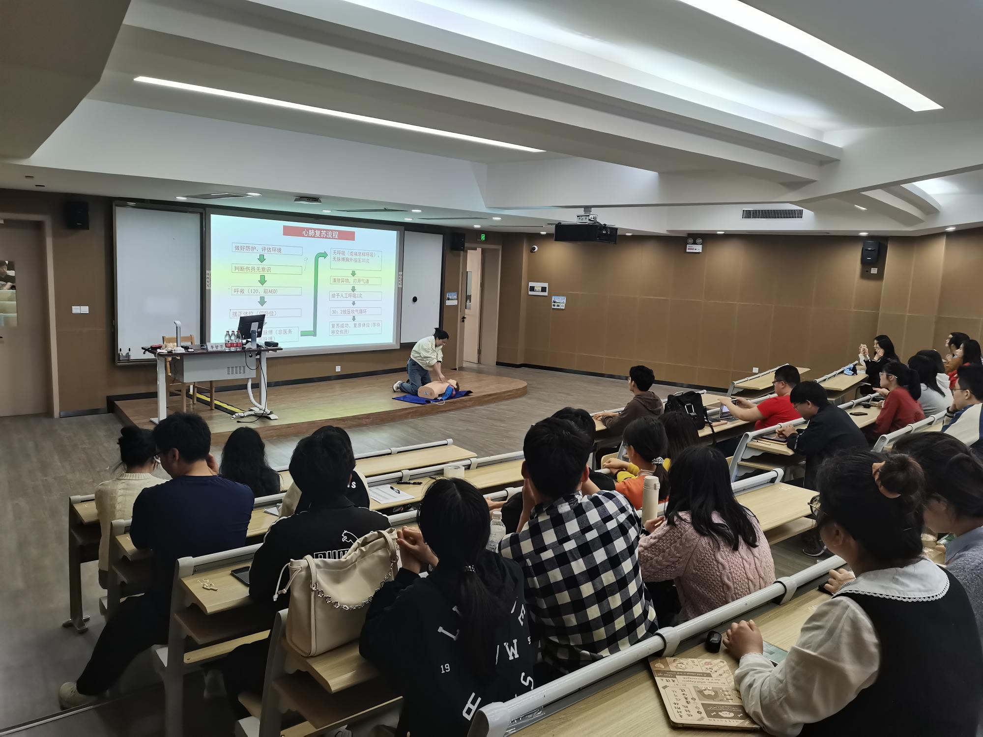 在北区2号教学楼206举办“学习急救知识,生命更加精彩”安全教育主题讲座。宁波镇海二院品牌发展部副主任、宁波红十字会救护师季碧芳担任主讲嘉宾,有爱爱