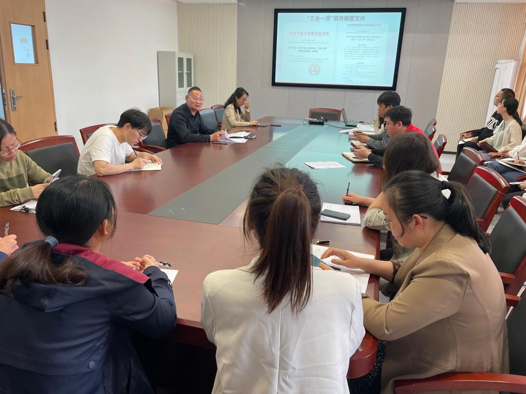 委员会“三会一课”制度实施细则(宁大党[2017]36号)。他强调,“三会一课’是党组织生活的基本形式,是加强党员日常教育管理的主要途径,加强党的建设,基础在基层,重点在支部,而“三会一课”是最基本的形式和最主要的路径,各党支部书记要将相关工作要求落实落细。