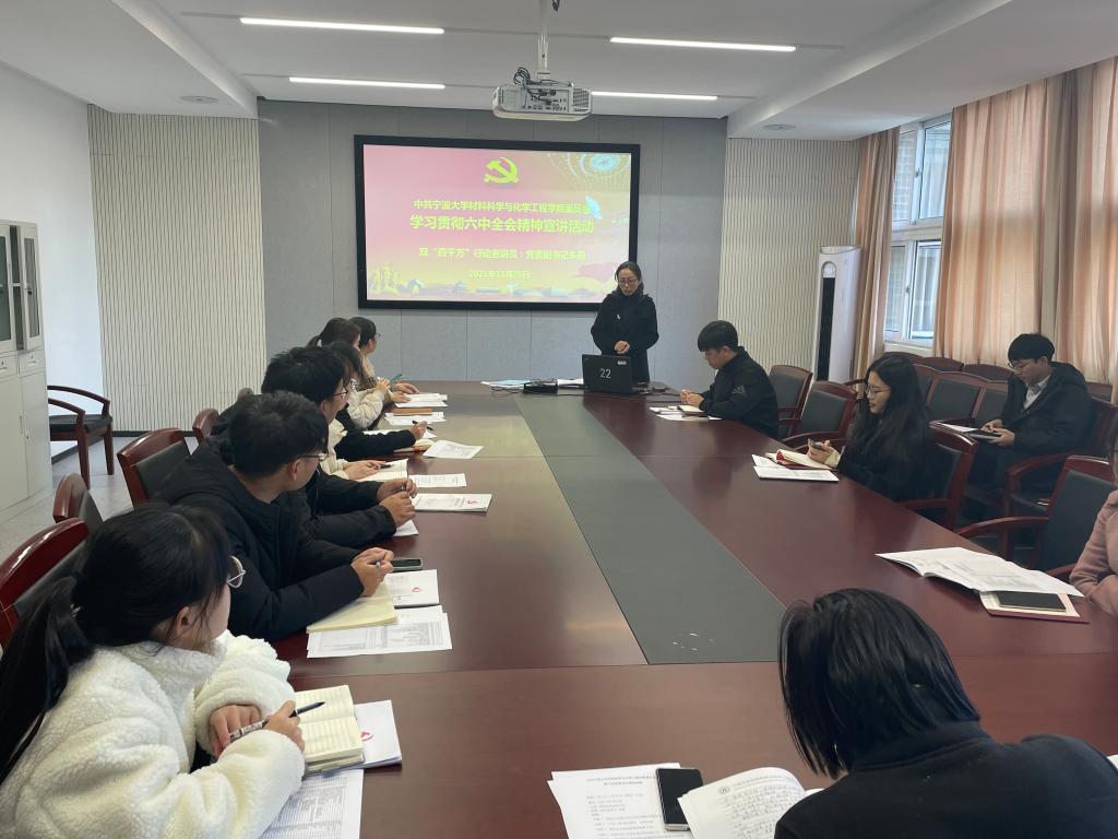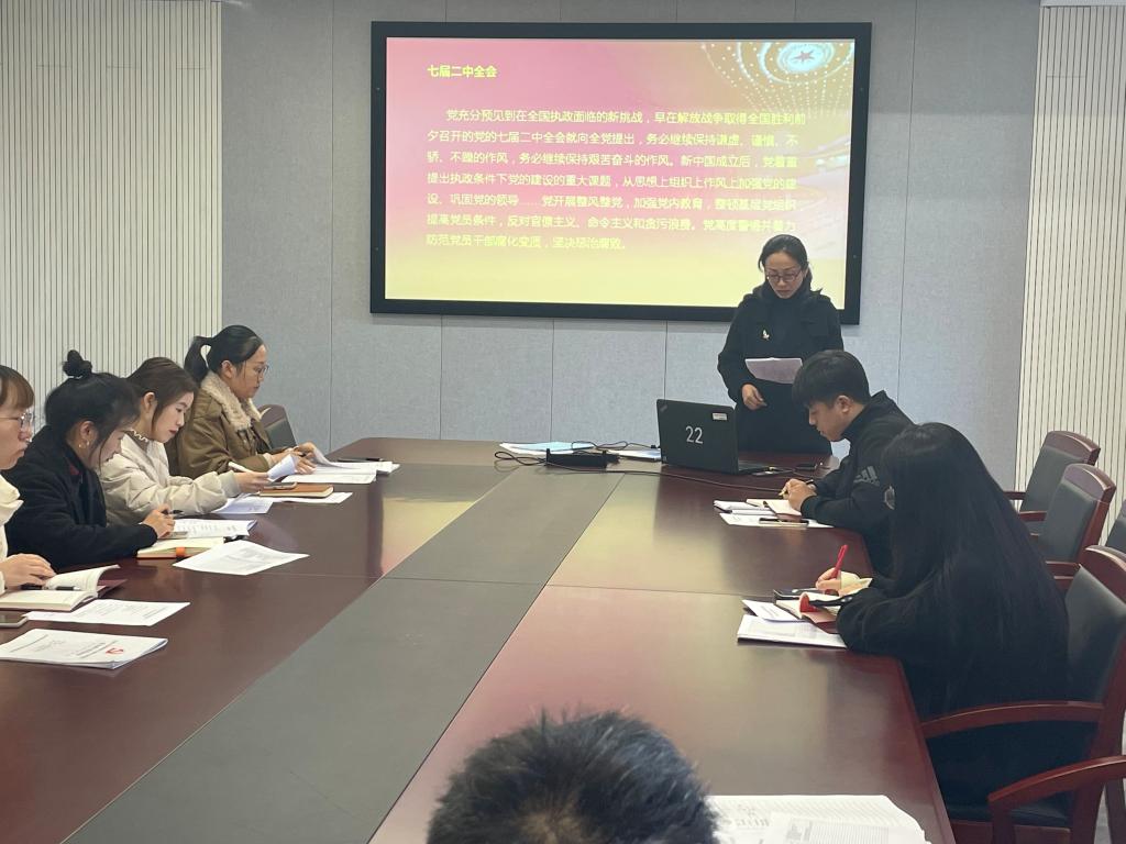 学院党委副书记、双“百千万”行动宣讲员朱燕首先作党的十九届六中全会会议精神专题宣讲。她以《党的作风建设》为主题,就《中共中央关于党的百年奋斗重大成就和历史经验的决议》做了详细的剖析和解读。随后,会议组织参会人员认真学习《中共有爱爱