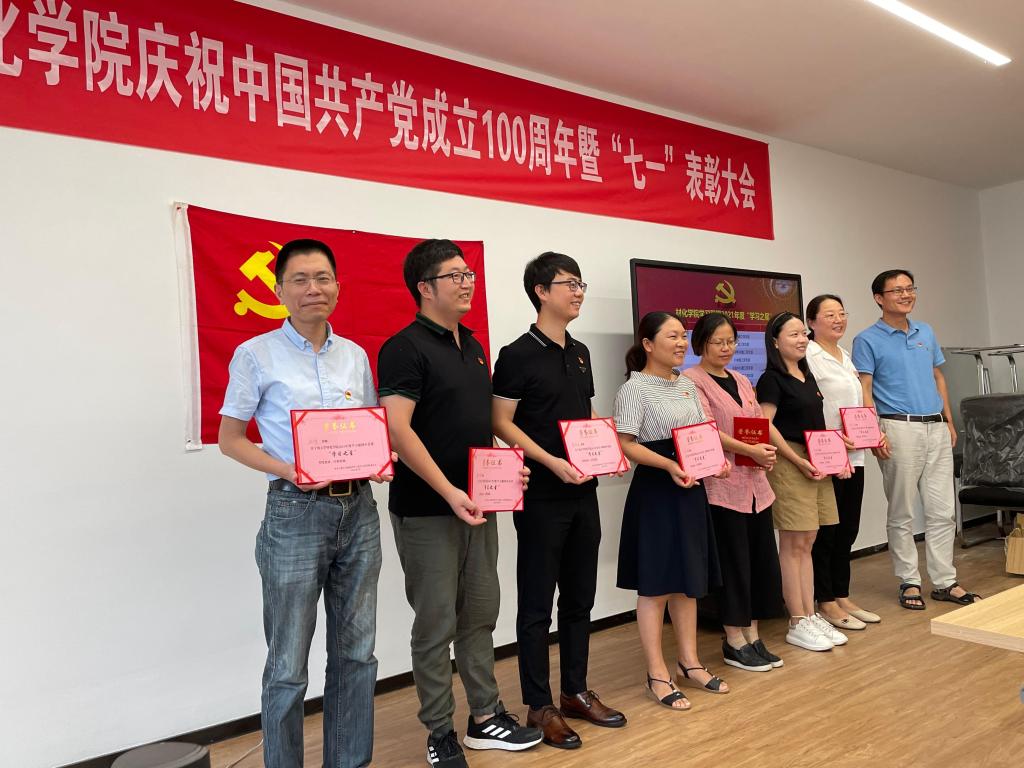 在北区1号实验楼1225教室召开庆祝中国共产党成立100周年暨“七一”表彰大会。学院党员领导干部、全体党委委员、党支部书记及新发展党员等参会。大会由院党委委员韩鸿儒主持。