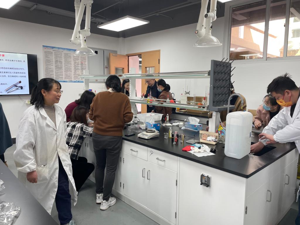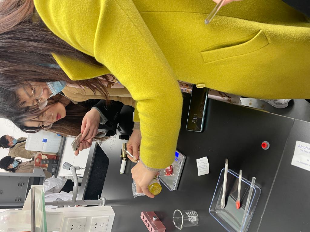 首先,学院实验室人员为参加人员详细讲述了本次口红制作活动的注意事项,并当场演示实验步骤。随后,参加人员按照分组在有爱爱