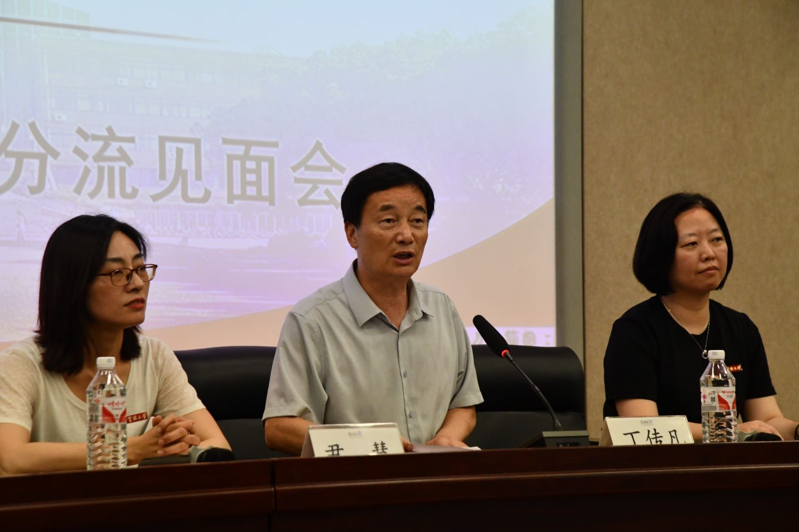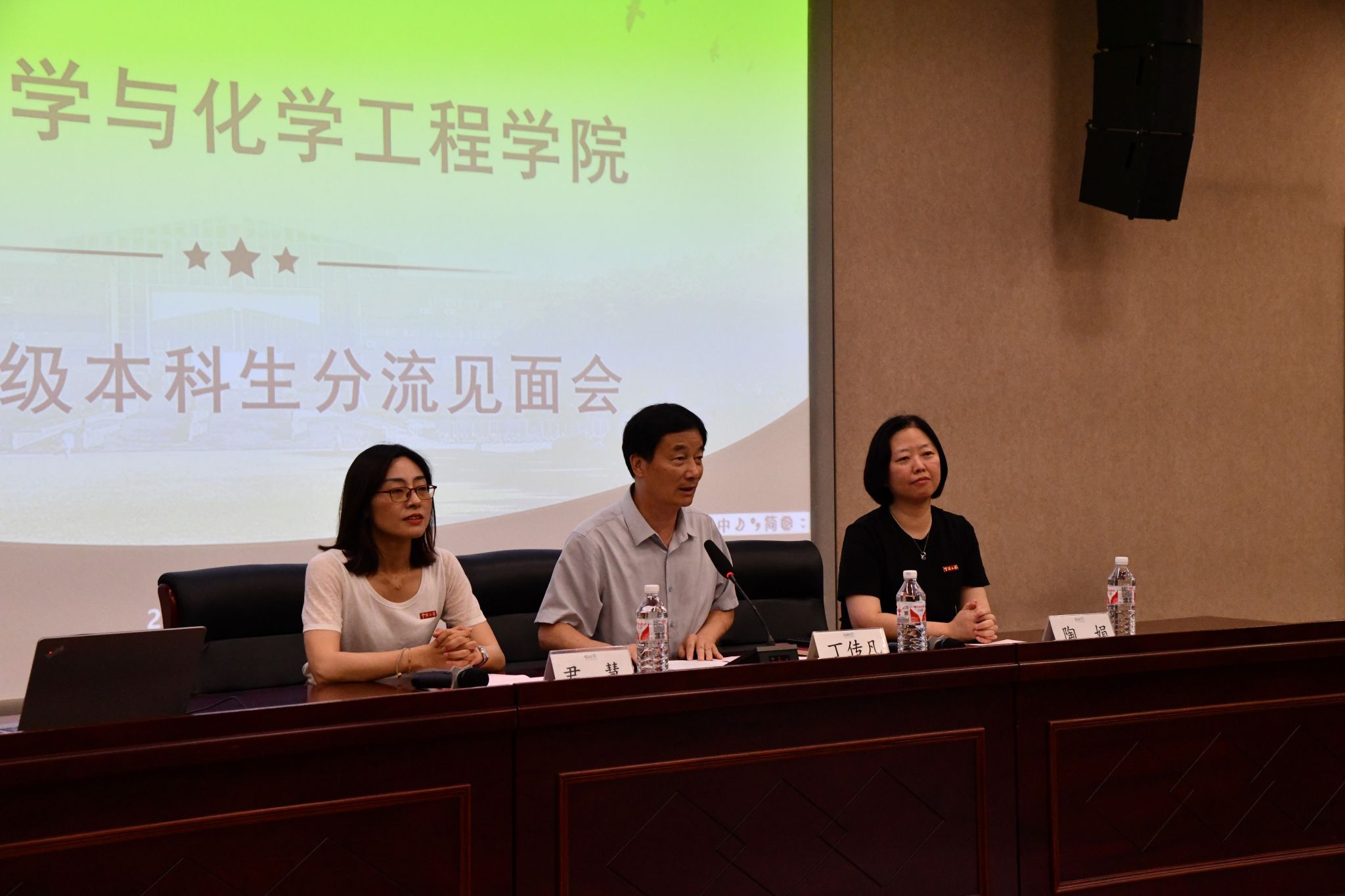 尹慧逐一介绍参加见面会的领导和老师。特聘院长丁传凡致欢迎词。他代表学院全体师生对2023级本科生的到来表示热烈欢迎,对有爱爱